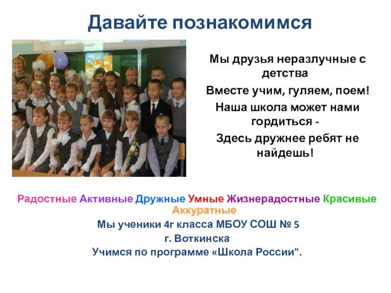 Радостные Активные Дружные Умные Жизнерадостные Красивые Аккуратные