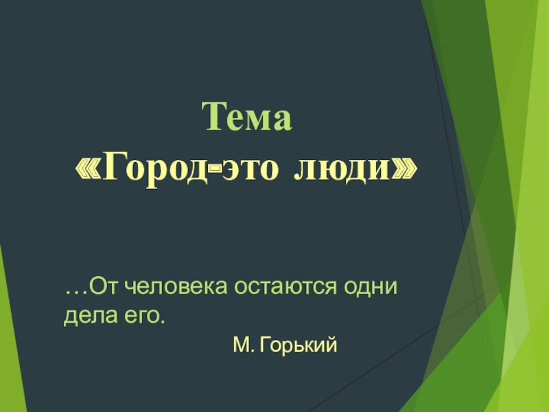 Тема «Город-это люди»…От человека остаются одни дела его. М. Горький
