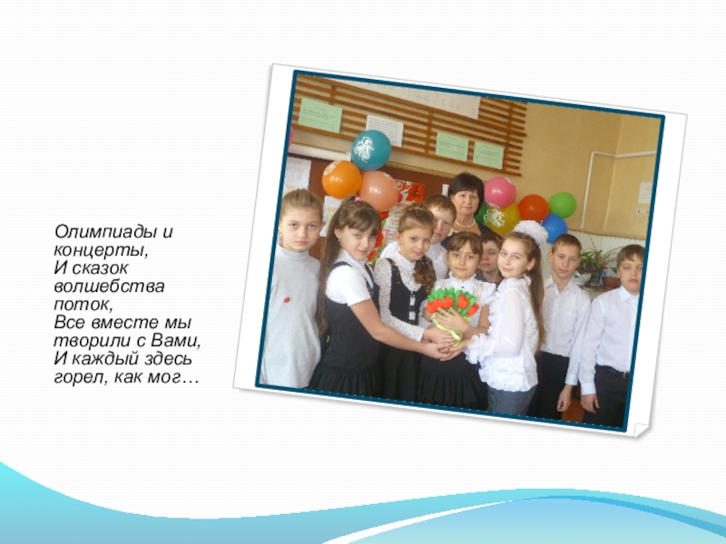 Слайд 11Олимпиады и концерты, И сказок волшебства поток, Все вместе мы творили с Вами, И