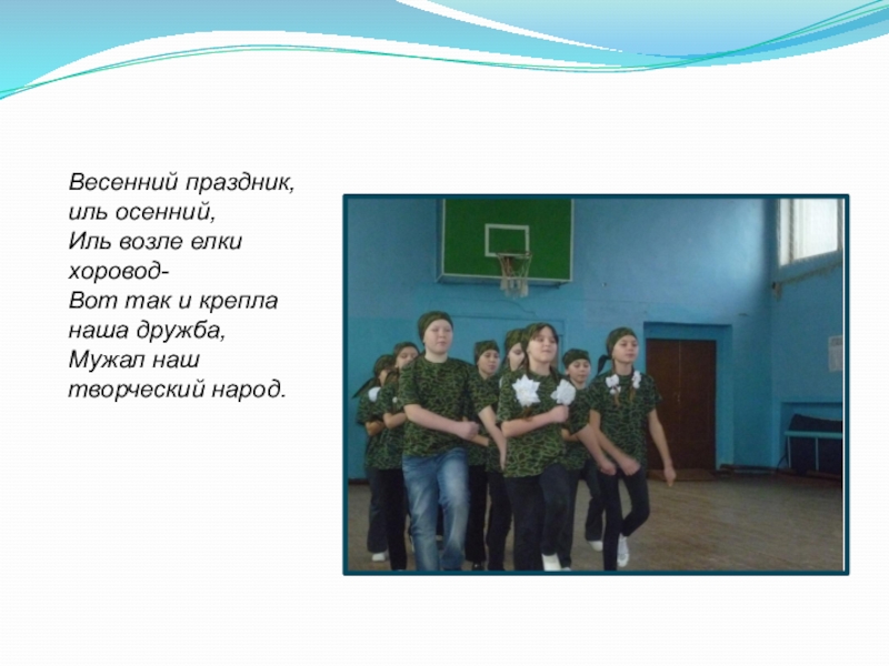 Слайд 7Весенний праздник, иль осенний, Иль возле елки хоровод- Вот так и крепла наша