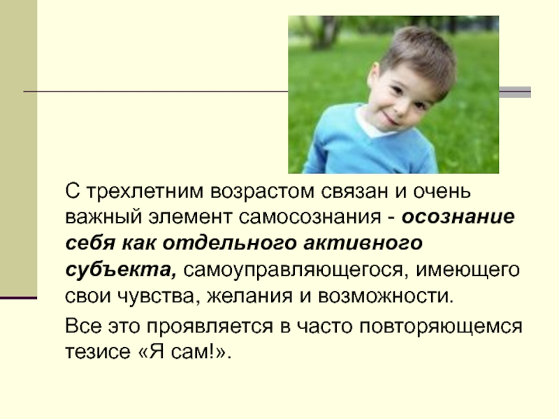 С трехлетним возрастом связан и очень важный элемент самосознания - осознание