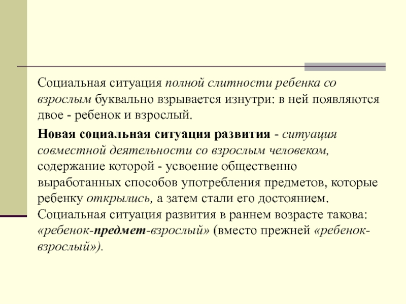 Социальная ситуация полной слитности ребенка со взрослым буквально взрывается изнутри: в