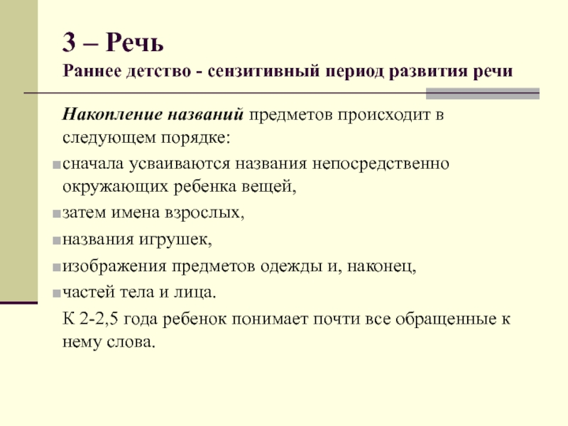 К 2-2,5 года ребенок понимает почти все обращенные к нему слова.