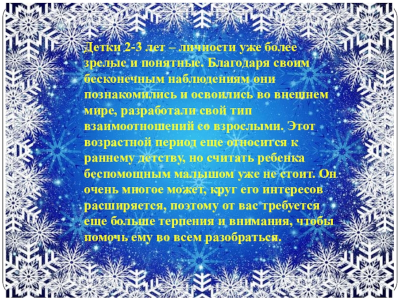 Слайд 2Детки 2-3 лет – личности уже более зрелые и понятные. Благодаря