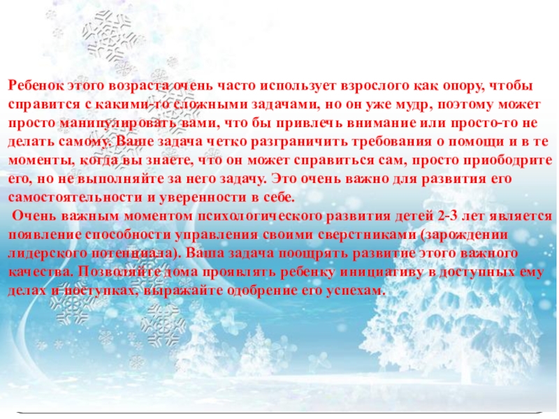 Слайд 8Ребенок этого возраста очень часто использует взрослого как опору, чтобы справится
