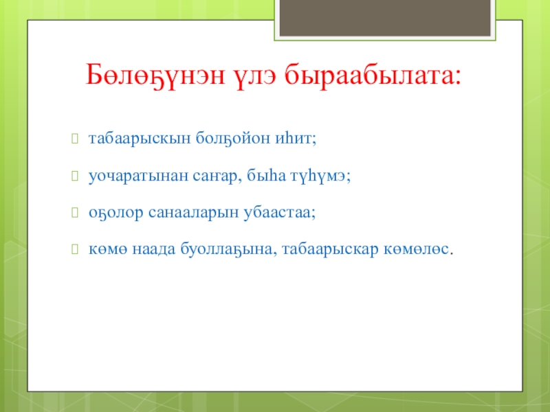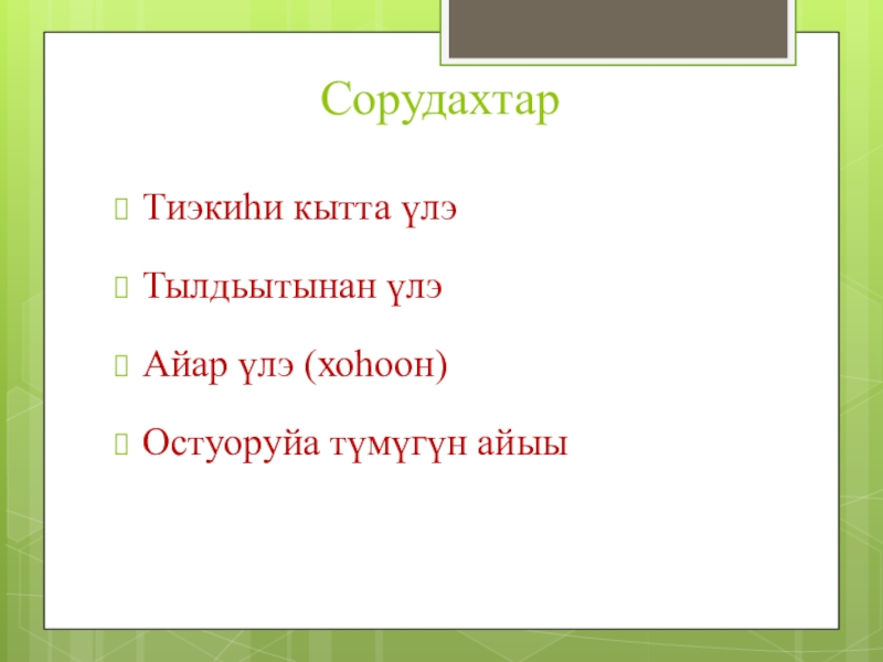 Слайд 92 сорудах тылдьытынан үлэ, этии оҥоруу