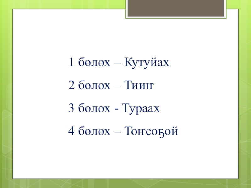 Слайд 111 бөлөх – Кутуйах