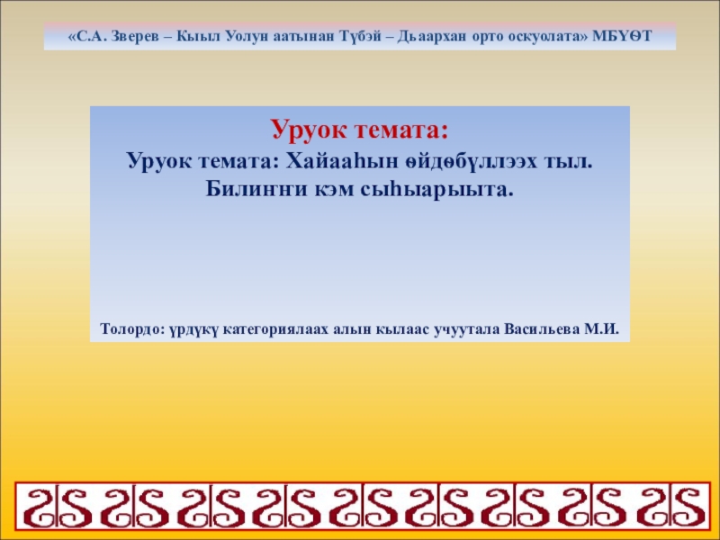 Уруок темата: Хайааһын ѳйдѳбүллээх тыл.