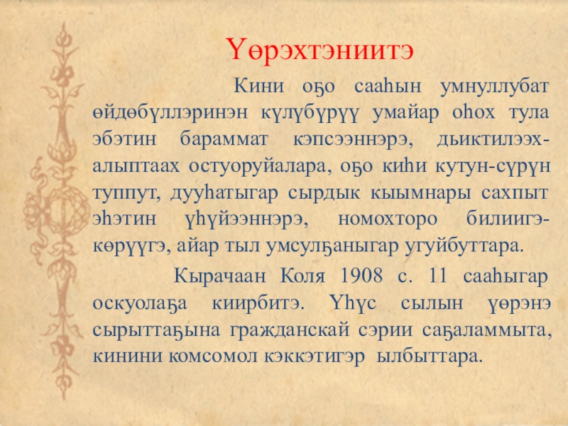 Слайд 2 Сүүрбэһис үйэ саҕаланыытыгар, 1908 с.