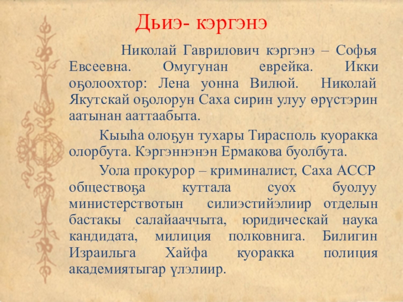 Николай Гаврилович кэргэнэ – Софья Евсеевна.