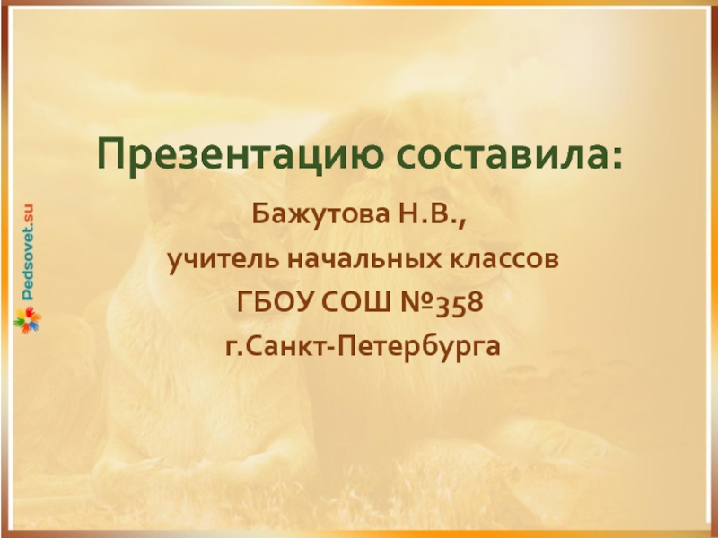 Презентацию составила:Бажутова Н.В., учитель начальных классов ГБОУ СОШ №358 г.Санкт-Петербурга