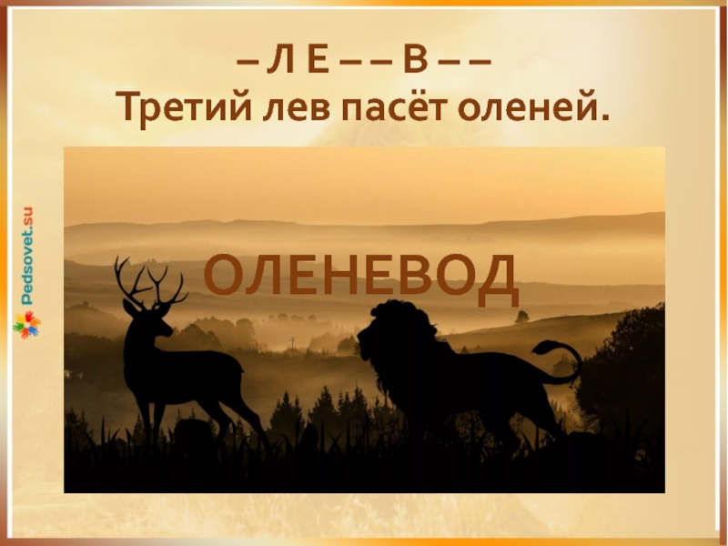 Слайд 4– Л Е – – В – – Третий лев пасёт оленей.