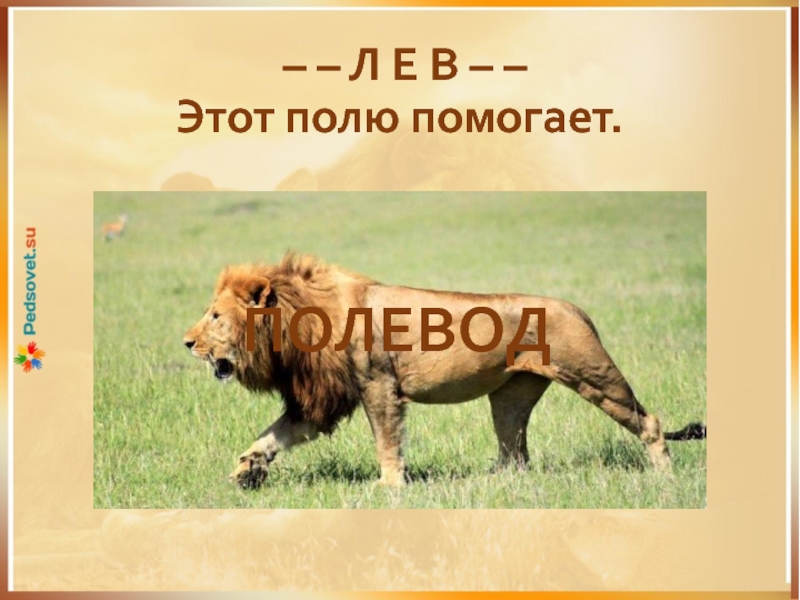 Слайд 9 – – Л Е В – – Этот полю помогает.