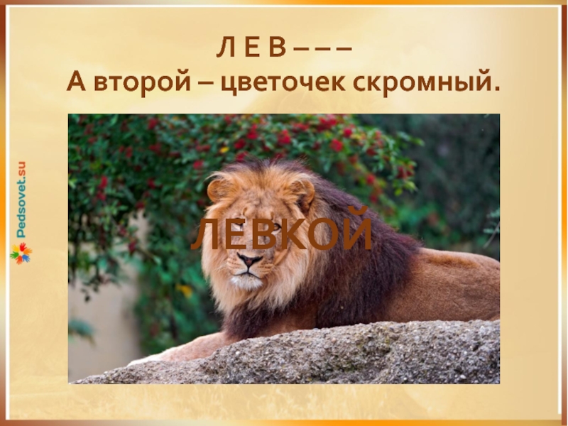 Слайд 3Л Е В – – – А второй – цветочек скромный.