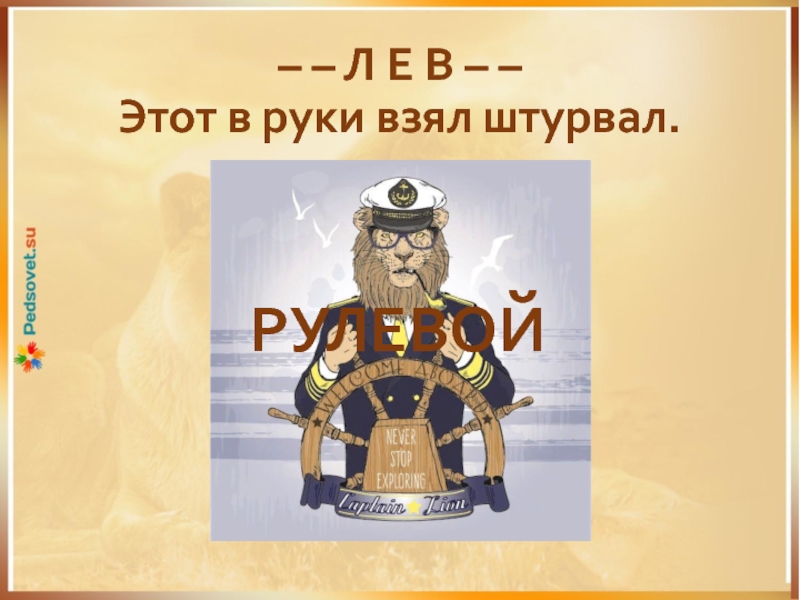 Слайд 10– – Л Е В – – Этот в руки взял штурвал.