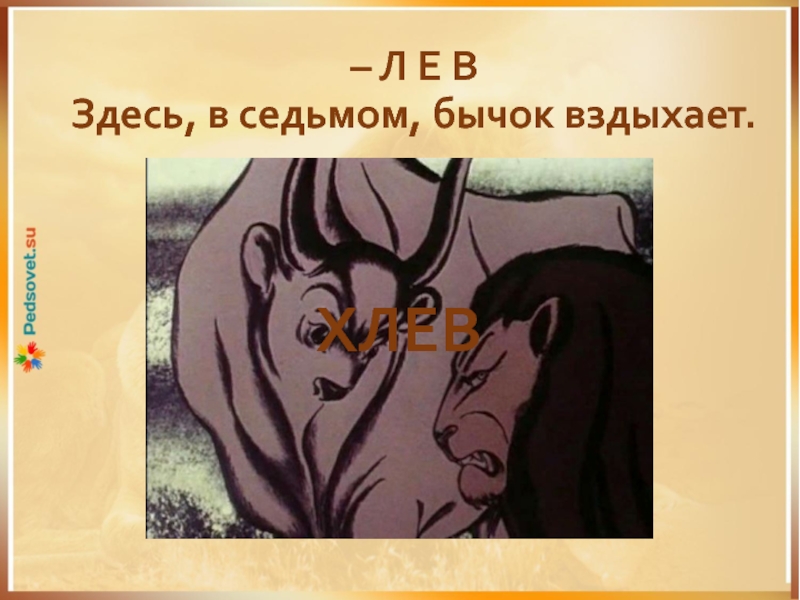 Слайд 8– Л Е В Здесь, в седьмом, бычок вздыхает.