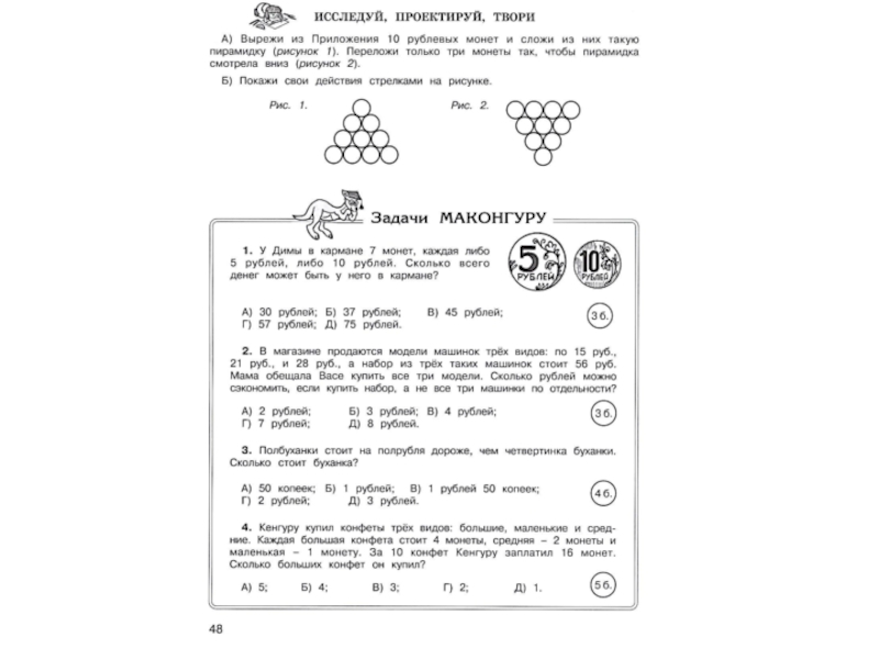 Презентация, доклад по занимательной математике по теме: Денежный бульвар (по программе Холодовой) 3 класс. Занятие 24