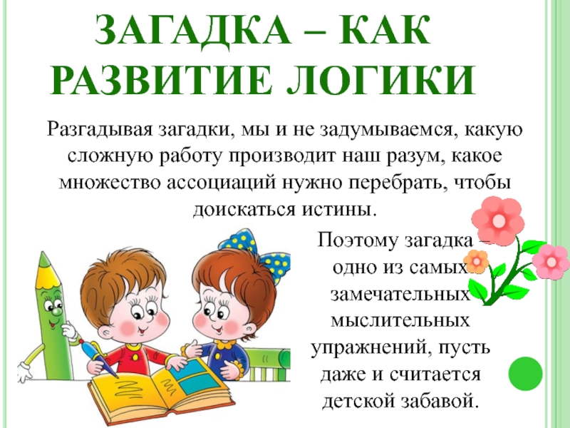 Поэтому загадка – одно из самых замечательных мыслительных упражнений, пусть даже и считается детской забавой.