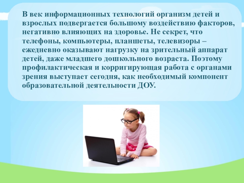 Слайд 3В век информационных технологий организм детей и взрослых подвергается большому воздействию