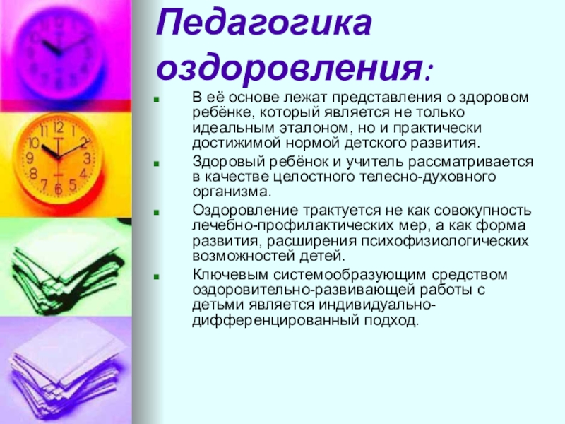 Оздоровление трактуется не как совокупность лечебно-профилактических мер, а как форма развития, расширения психофизиологических возможностей детей.