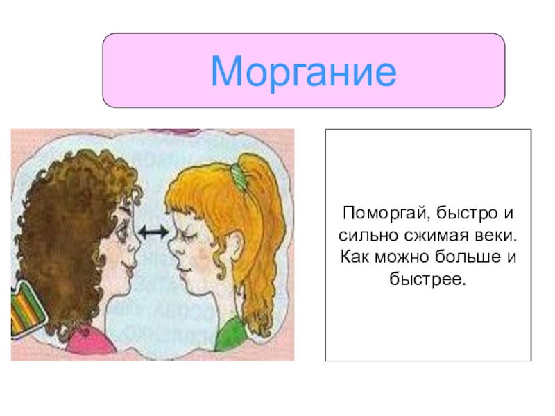 МорганиеПоморгай, быстро и сильно сжимая веки.Как можно больше ибыстрее.