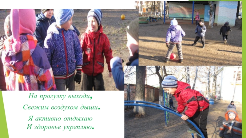 На прогулку выходи, Свежим воздухом дыши.Я активно отдыхаю  И здоровье укрепляю.