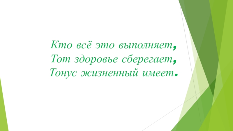 Слайд 12Кто всё это выполняет, Тот здоровье сберегает, Тонус жизненный имеет.