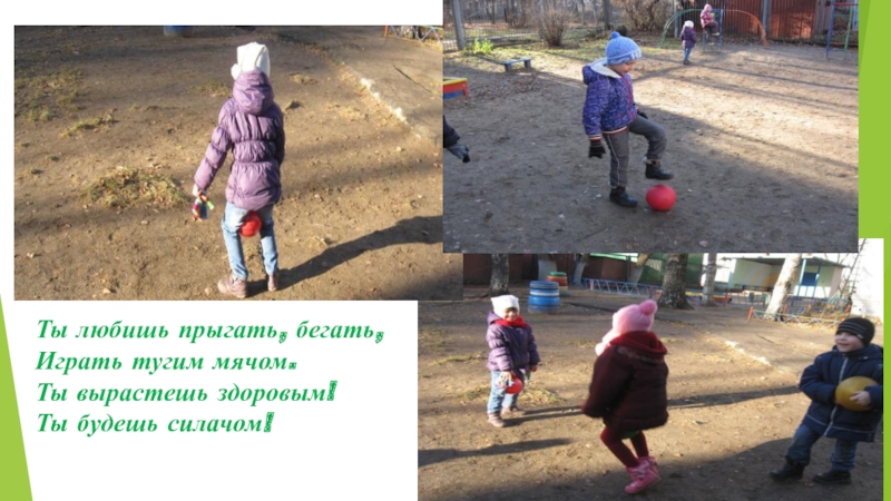 Слайд 8Ты любишь прыгать, бегать, Играть тугим мячом. Ты вырастешь здоровым! Ты будешь силачом!