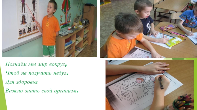 Познаём мы мир вокруг,Чтоб не получить недуг.Для здоровья Важно знать свой организм.