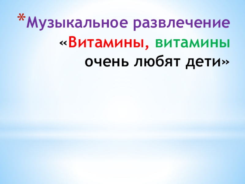 Слайд 20Музыкальное развлечение «Витамины, витамины очень любят дети»