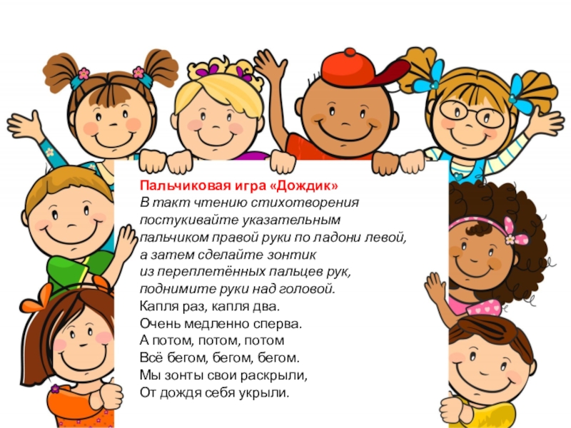 Показать детям как "Рука руку моет".дети выполняют упр. вместе с воспитателем.