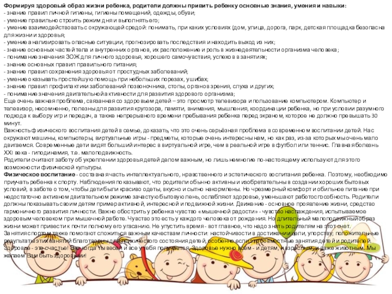 Слайд 51Формируя здоровый образ жизни ребенка, родители должны привить ребенку основные знания,