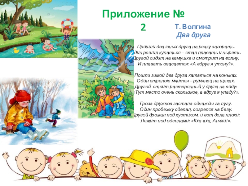Чтение художественной литературы: Тема: Чтение стихотворения Т. Волгиной «Два друга». (Приложение №2)