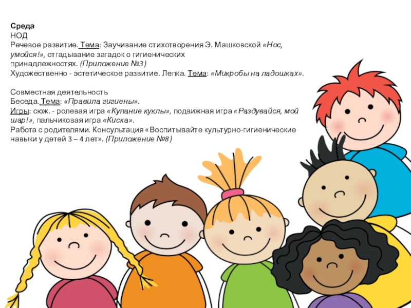 Речевое развитие. Тема: Заучивание стихотворения Э. Машковской «Нос,умойся!», отгадывание загадок о гигиенических