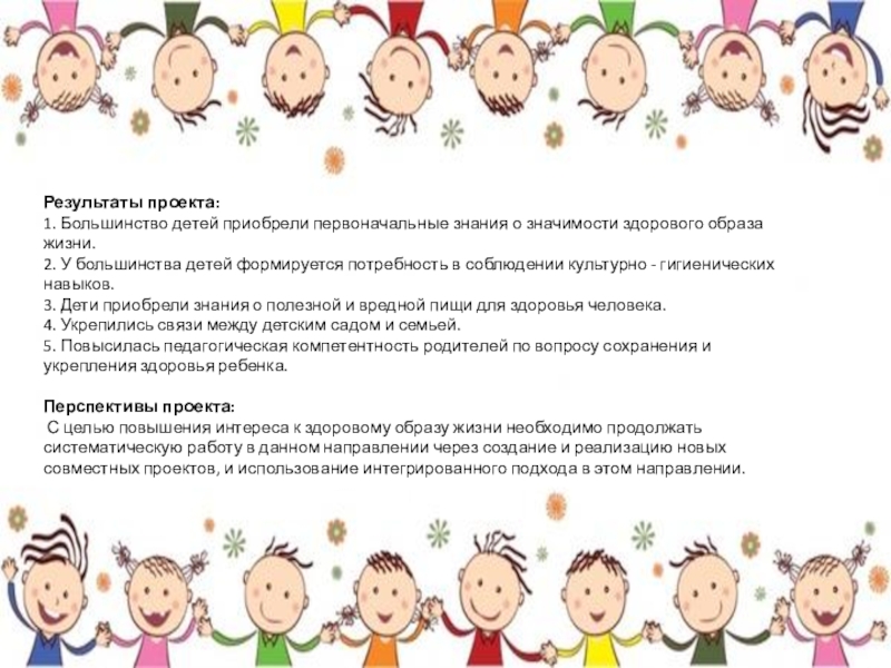 • Дети и родители имеют элементарные представления о ценности здоровья.
