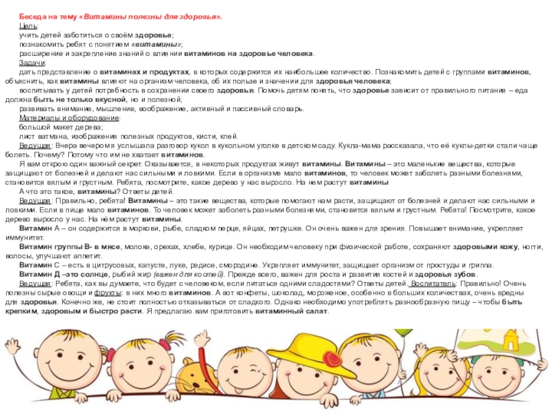 Беседа. Тема: «Витамины полезны для здоровья».