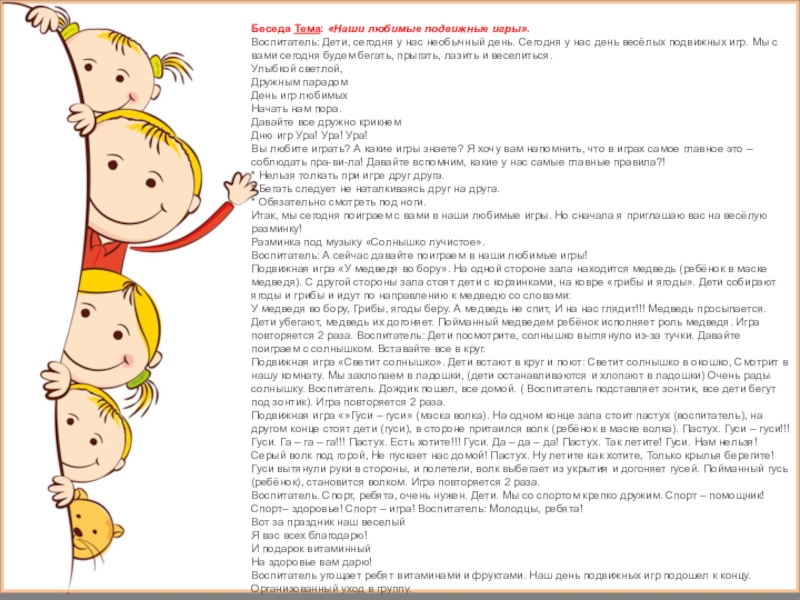 Беседа Тема: «Наши любимые подвижные игры».