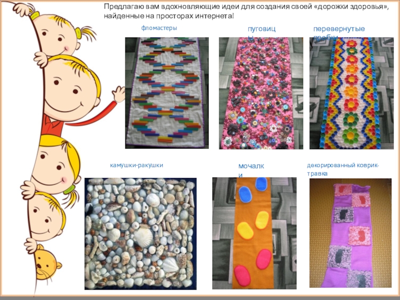 Слайд 45Предлагаю вам вдохновляющие идеи для создания своей «дорожки здоровья», найденные на