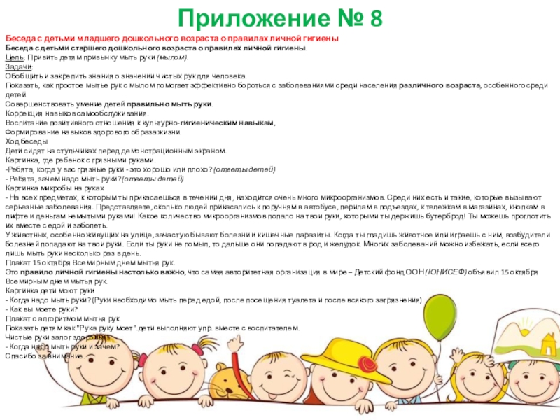 детьми старшего дошкольного возраста о правилах личной гигиены.