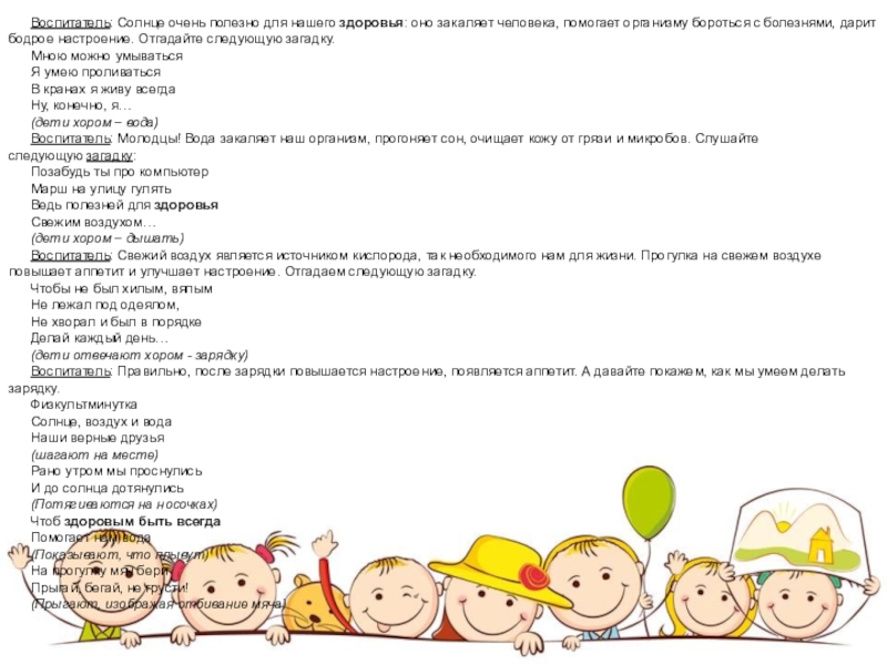 Воспитателям и родителям необходимо уделять особое внимание укреплению здоровья ребенка и формированию привычки здорового образа жизни.