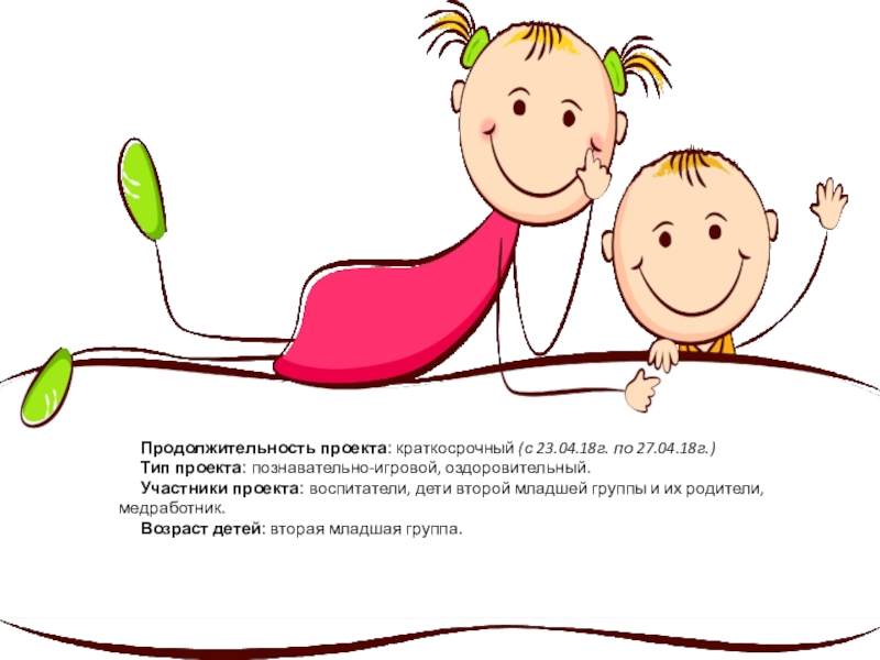 Слайд 3Продолжительность проекта: краткосрочный (с 23.04.18г. по 27.04.18г.)