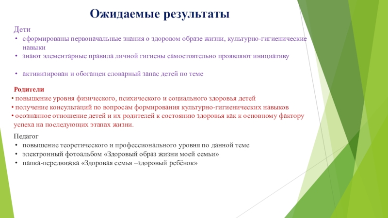 осознанное отношение детей и их родителей к состоянию здоровья как к основному фактору успеха на последующих этапах жизни.