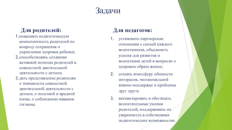 установить партнерские отношения с семьей каждого воспитанника, объединить усилия для развития и воспитания детей в вопросах о здоровом образе жизни;
