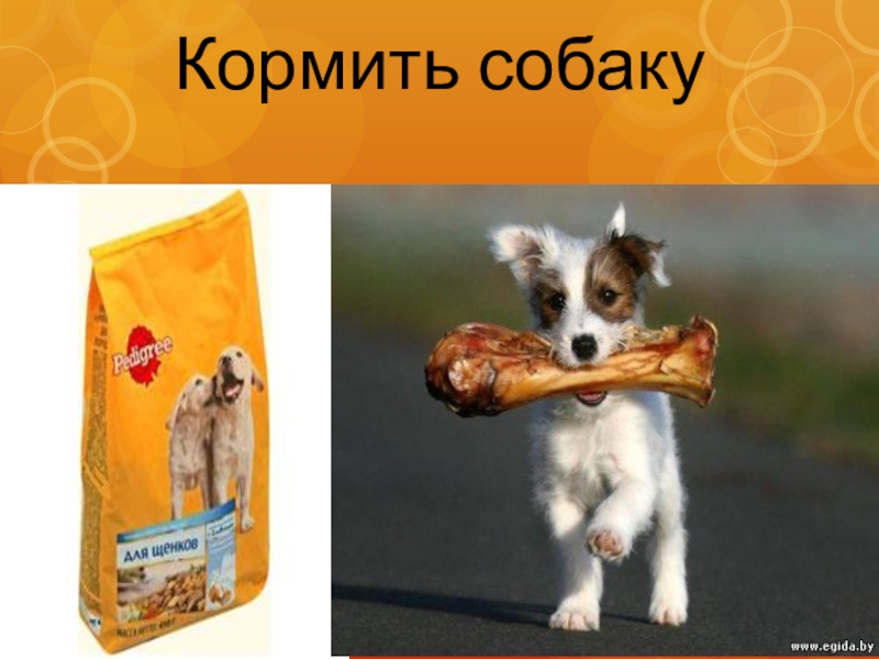 Слайд 11Кормить собаку