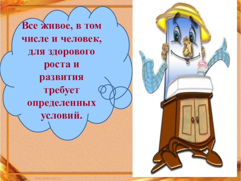 Все живое, в том числе и человек, для здорового роста и развития требует определенных условий.