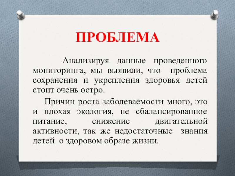 Причин роста заболеваемости много, это и плохая экология, не сбалансированное питание, снижение двигательной активности, так же недостаточные знания детей о здоровом образе жизни.