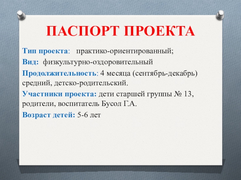 Слайд 9ПАСПОРТ ПРОЕКТА