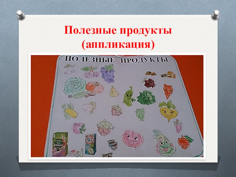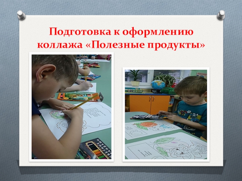 Слайд 15Подготовка к оформлению коллажа «Полезные продукты»