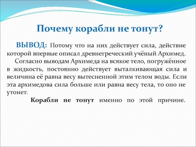 Почему корабли не тонут?