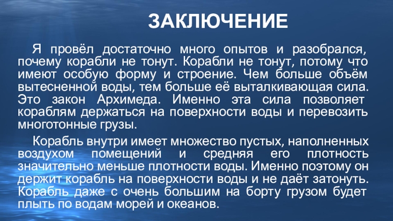 Я провёл достаточно много опытов и разобрался, почему корабли не тонут.